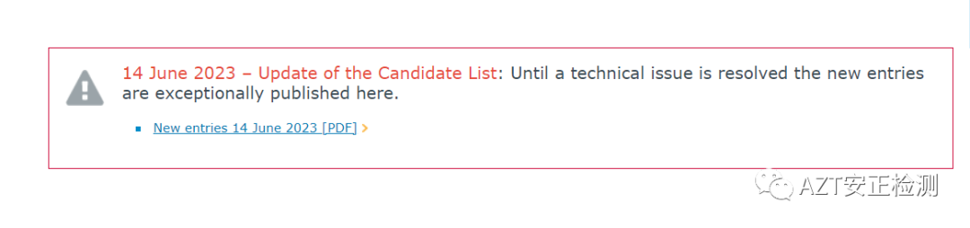 官方连接:https://www.echa.europa.eu/web/guest/candidate-list-table